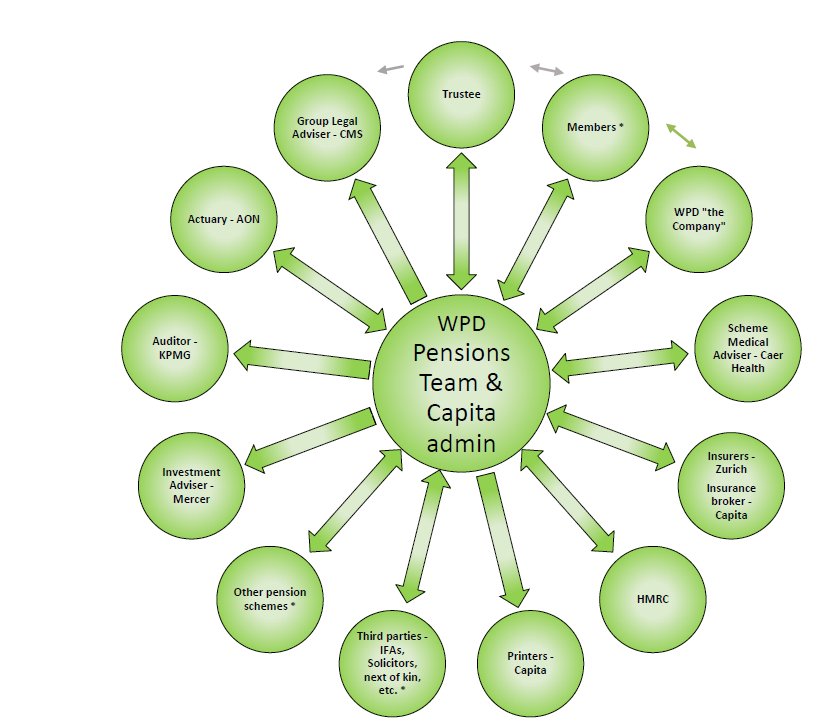 We share your personal data with other third parties involved in running the Scheme, for example, with the WPD Pensions Team and Capita who are the Scheme administrators, Damien Kelson at Aon as the Scheme Actuary (Aon have also provided some additional information at the end of this notice) and the WPD employer responsible for the Scheme. An illustrative data flow document is set out at the end of this privacy notice.